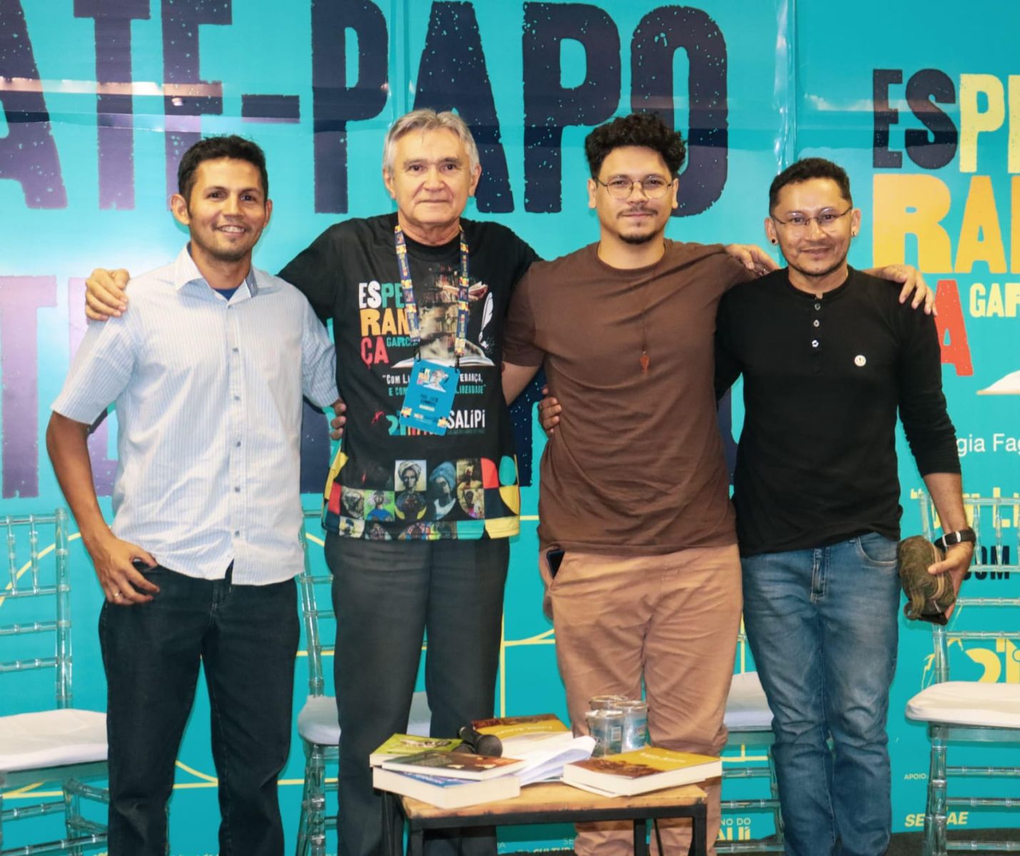 Do bate-papo literário, mediado pelo ilustre professor Luiz Romero, participaram o pesquisador Thiago Inácio, do Projeto Lagoa Alegre Memórias; o historiador Danilo Reis, do grupo Piquete Explorador do Estanhado, que na ocasião também fez o lançamento de sua nova obra "Asas da Modernidade", e o professor Tito Almeida, autor de "Desapaixone-se".